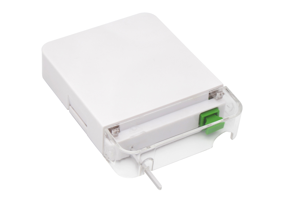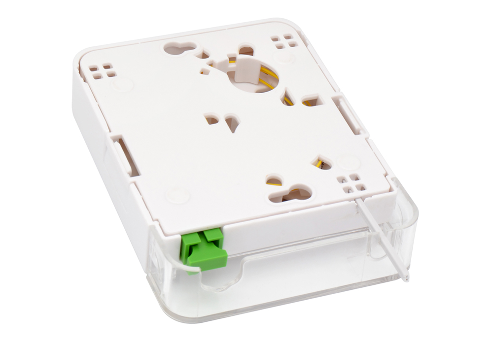 This box is supplied with a transparent plastic cover on the front adaptor side, providing major protection to the installed fibers.