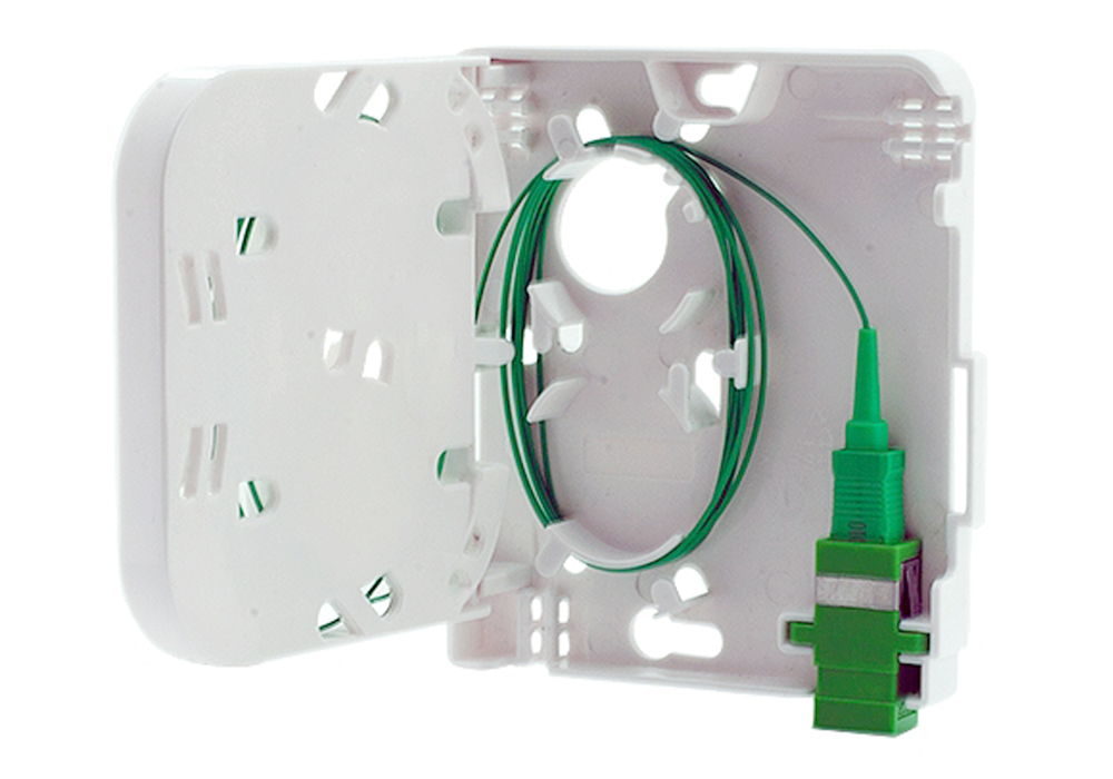 FS-W-1A wall outlet designed for use in residential and business applications for the termination of up to four fibers.
