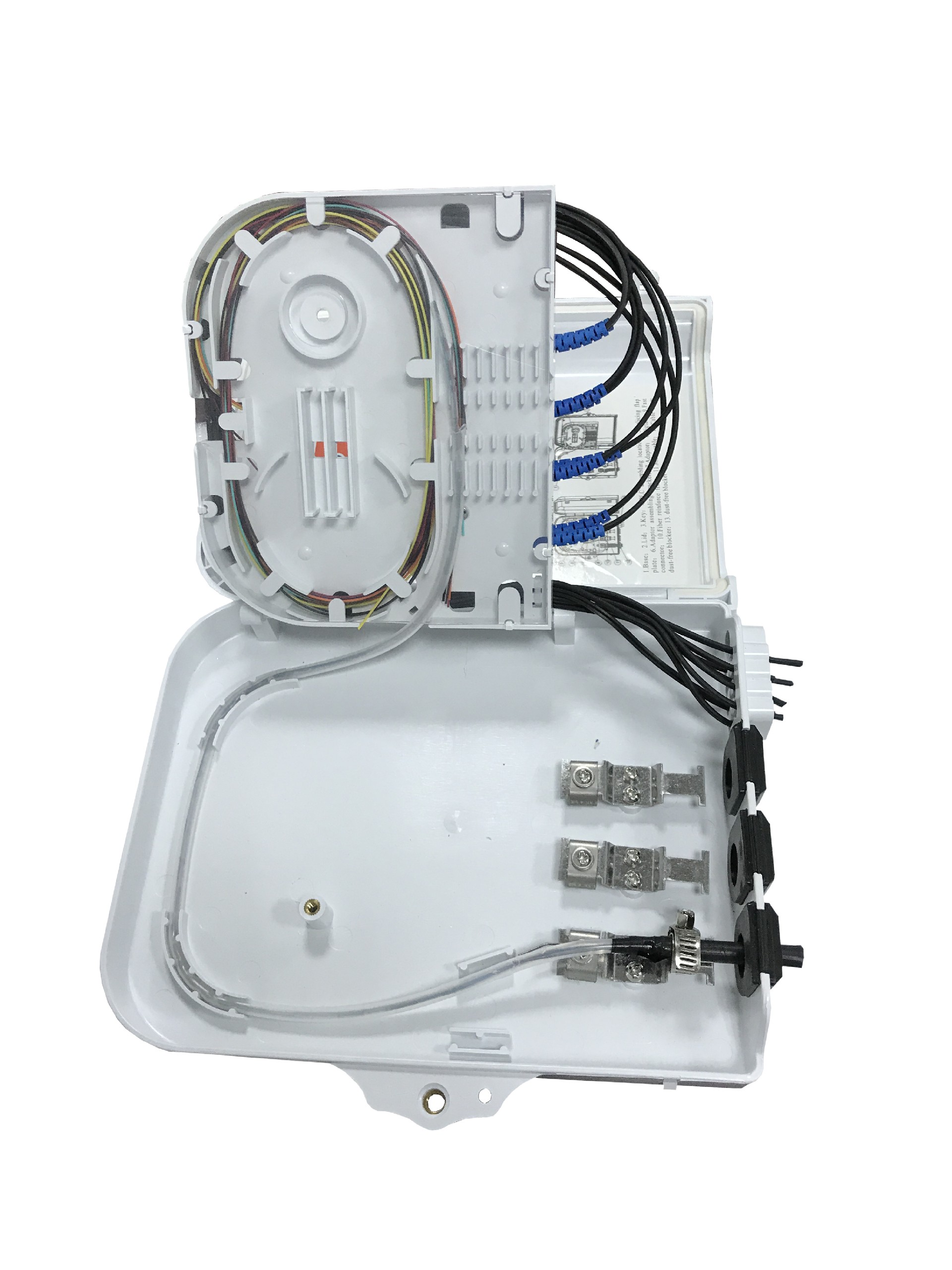 FDB-G-8E is used as a termination point for the feeder cable to connect with drop cable in FTTx communication network system. The fiber splicing, splitting and distribution can be done in this box, and in meanwhile, it provides solid protection and management for the FTTx network building