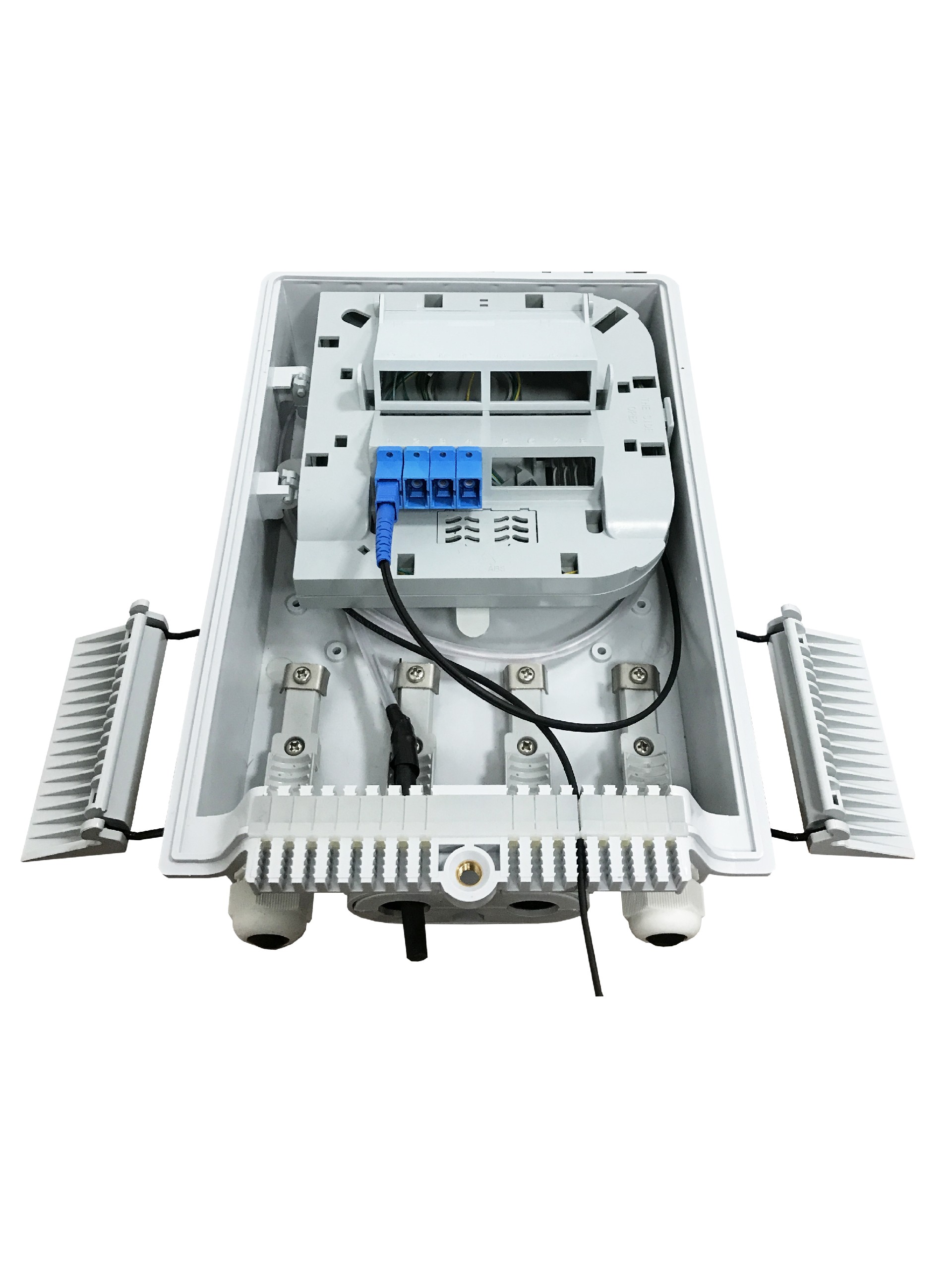 FDB-G-16W-1 is used as a termination point for the feeder cable to connect  with drop cable in FTTx communication network system. The fiber splicing, splitting  and distribution can be done in this box, and in meanwhile, it provides solid  protection and management for the FTTx network building