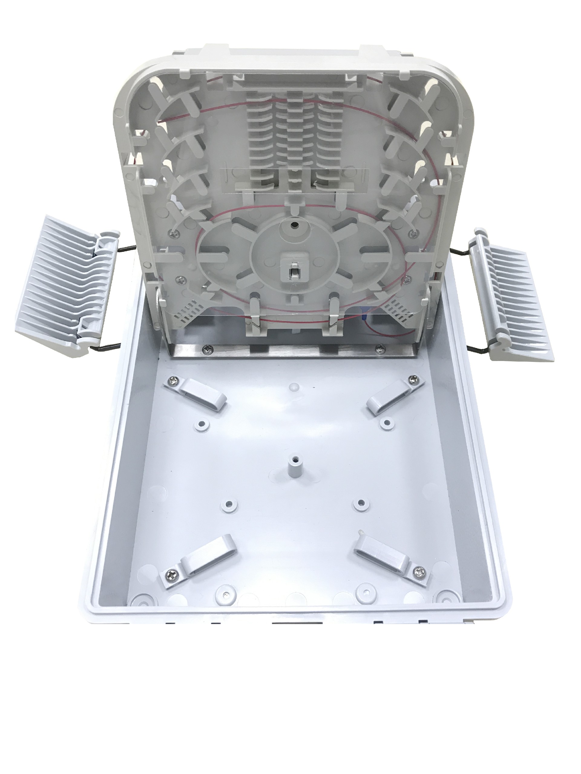 FDB-G-16W-2 is used as a termination point for the feeder cable to connect with drop cable in FTTx communication network system. The fiber splicing, splitting and distribution can be done in this box, and in meanwhile, it provides solid protection and management for the FTTx network building