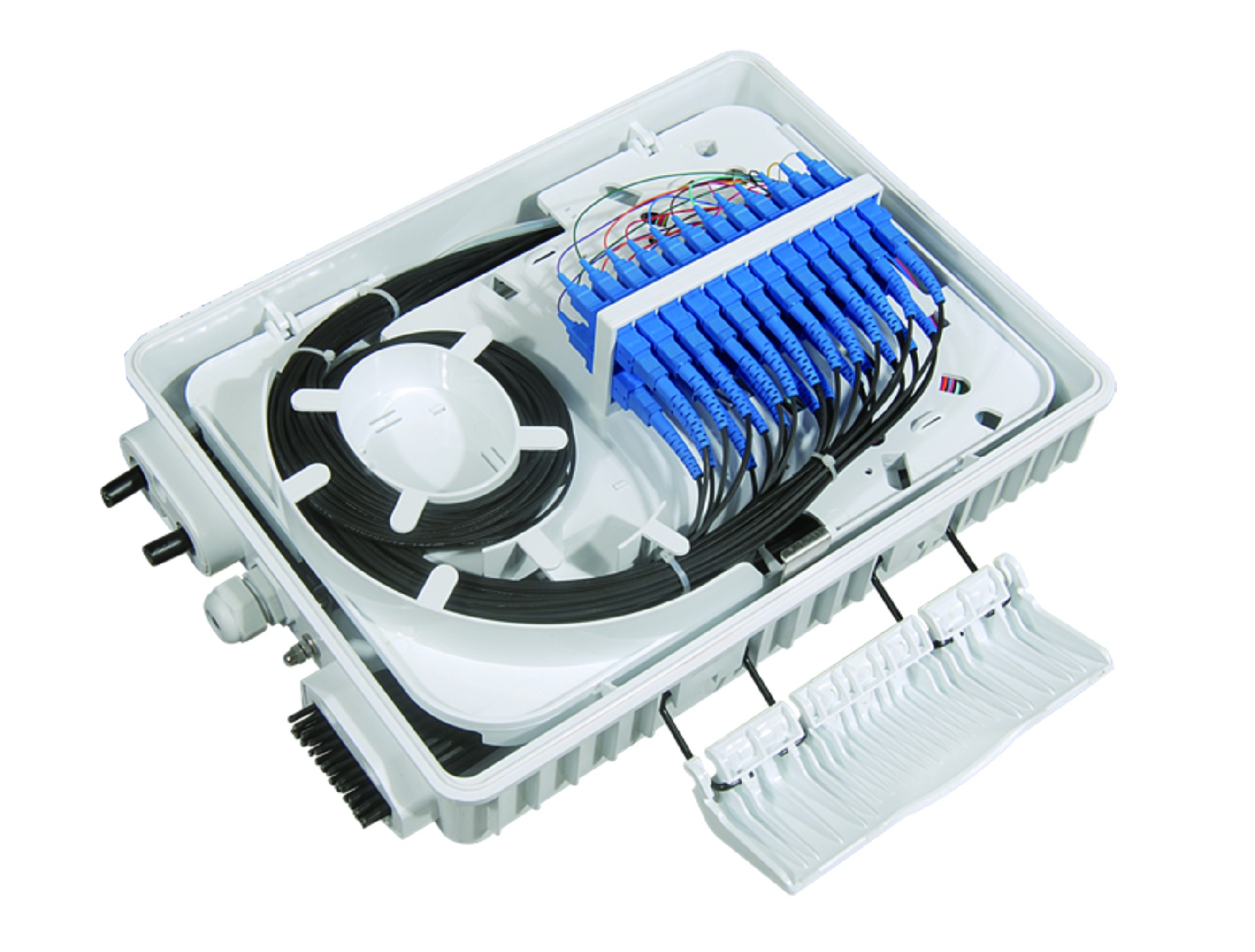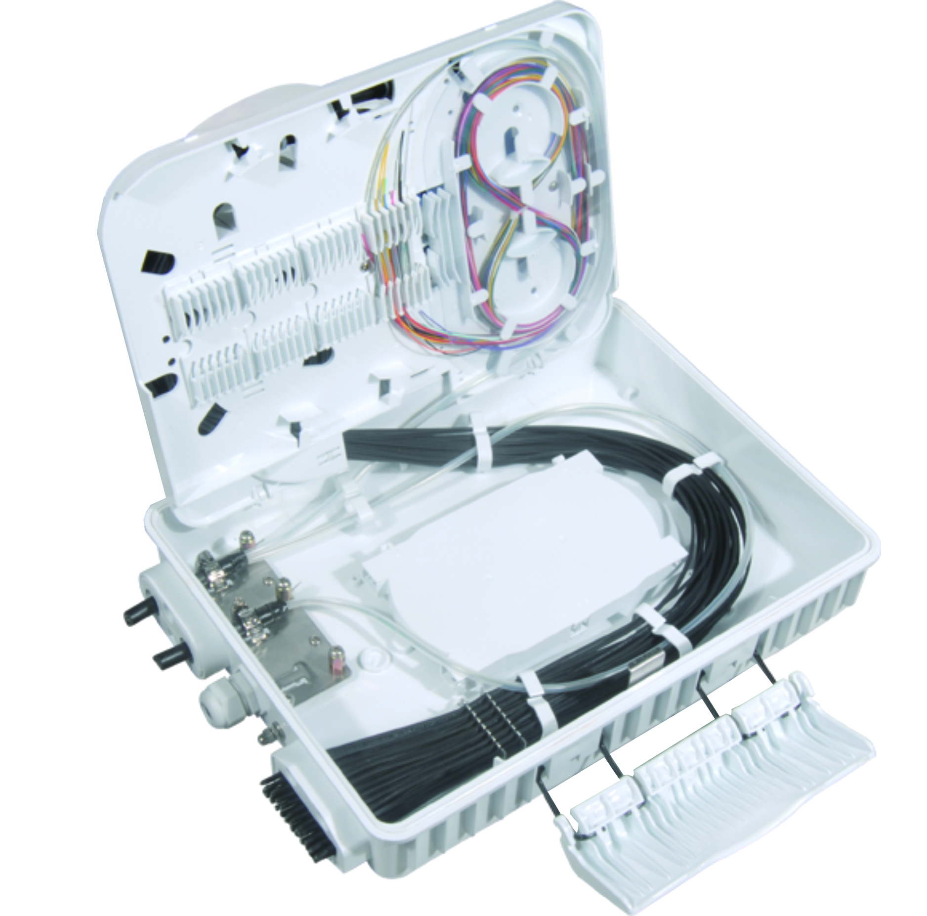 FDB-G-24E is used as a termination point for the feeder cable to connect with drop cable in FTTx communication network system. The fiber splicing, splitting and distribution can be done in this box, and in meanwhile, it provides solid protection and management for the FTTx network building