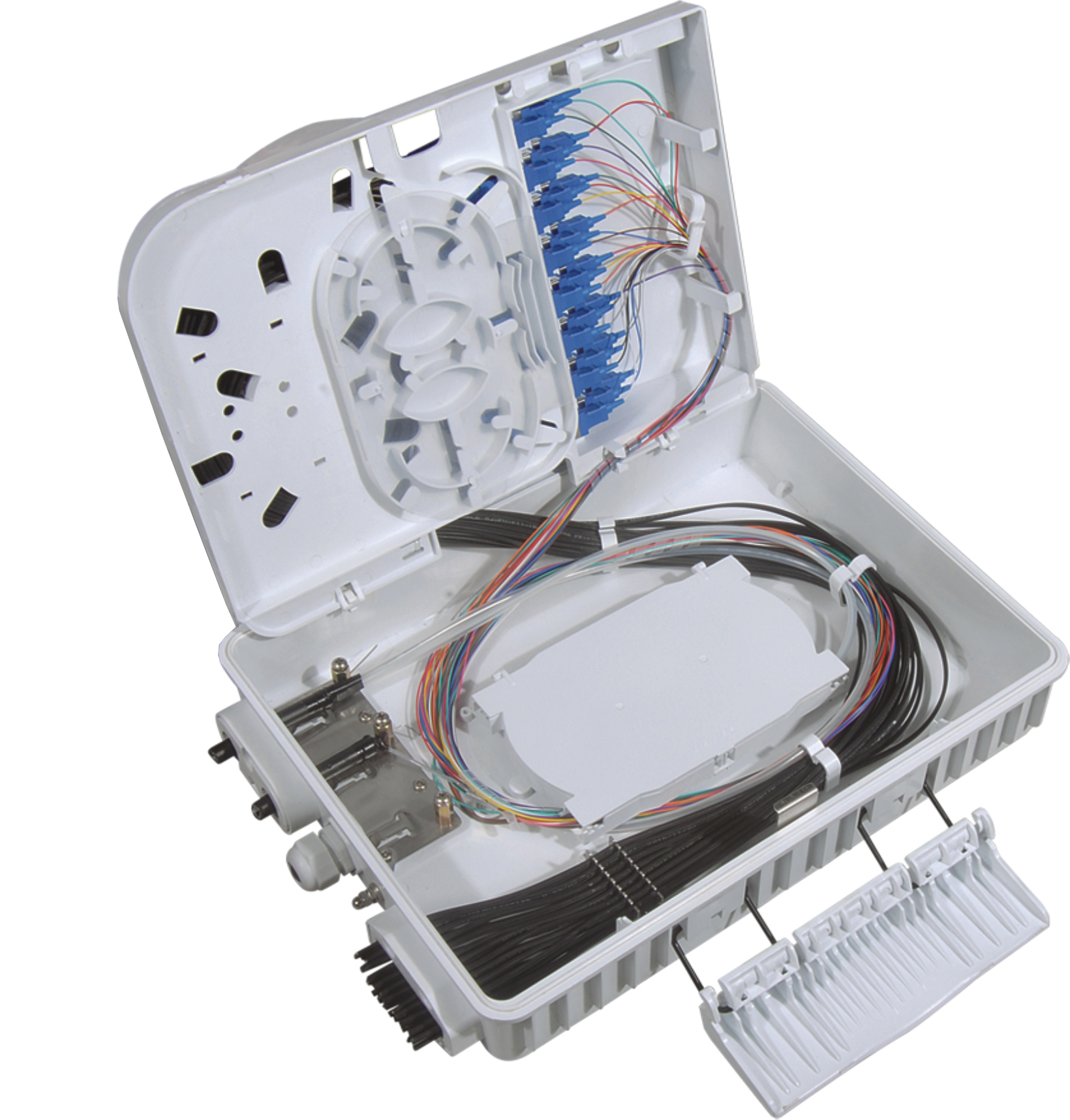 FDB-G-24H is used as a termination point for the feeder cable to connect with drop cable in FTTx communication network system. The fiber splicing, splitting and distribution can be done in this box, and in meanwhile, it provides solid protection and management for the FTTx network building