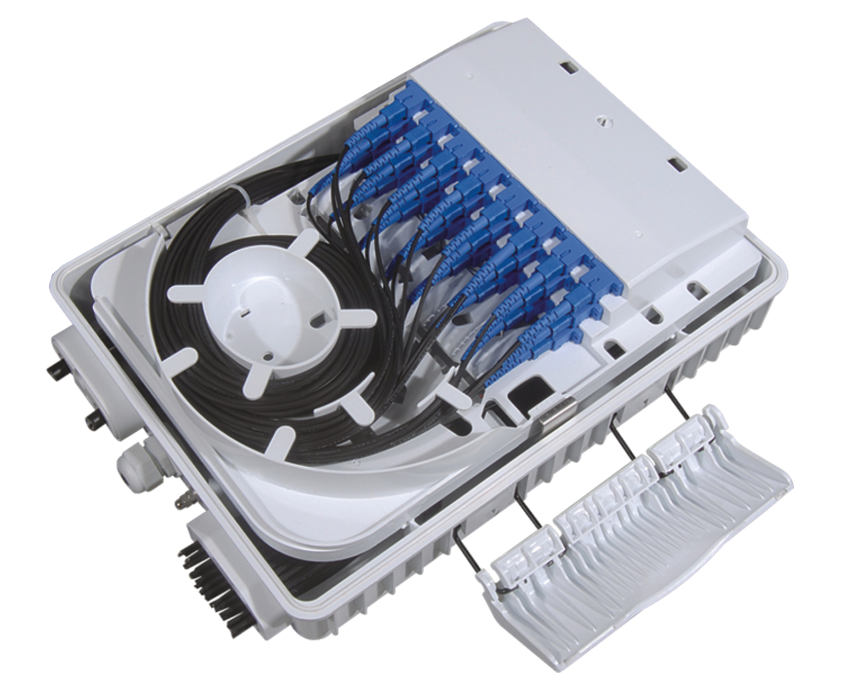 FDB-G-24H is used as a termination point for the feeder cable to connect with drop cable in FTTx communication network system. The fiber splicing, splitting and distribution can be done in this box, and in meanwhile, it provides solid protection and management for the FTTx network building