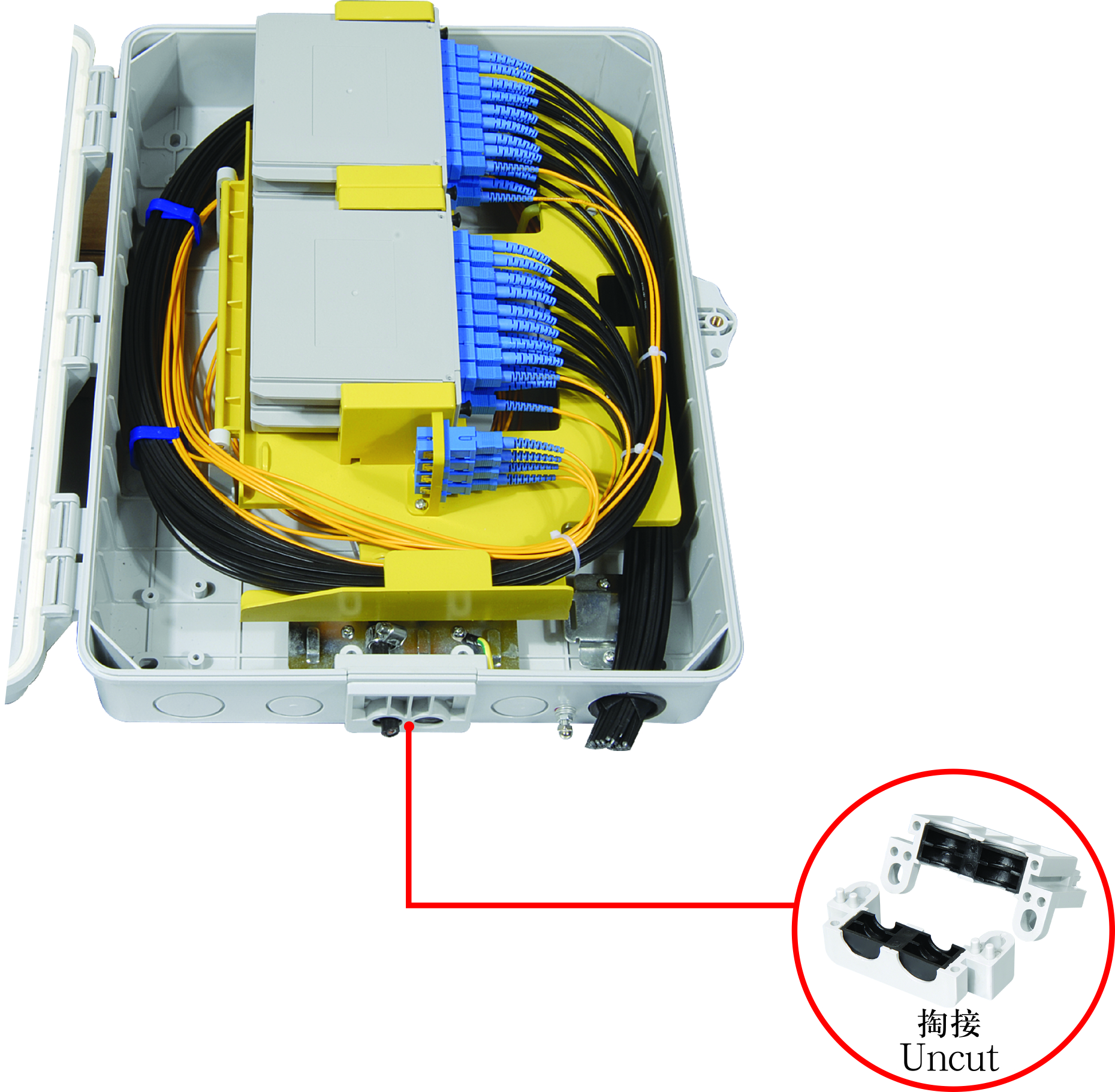 FDB-G-32B is used as a termination point for the feeder cable to connect with drop cable in FTTx communication network system. The fiber splicing, splitting and distribution can be done in this box, and in meanwhile, it provides solid protection and management for the FTTx network building